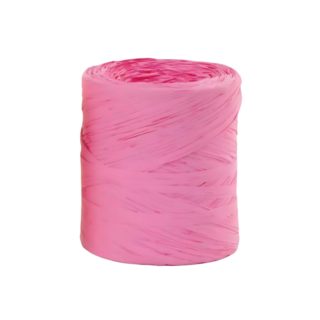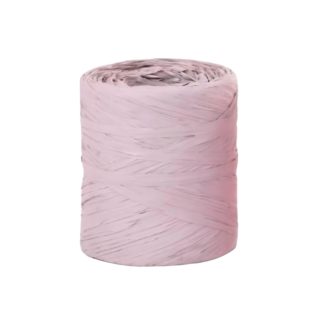 Bobina de cinta de rafia sintética de polipropileno en color rosa palo, con 15 mm de ancho y 200 metros de longitud. Ideal para cierre de bolsas, decoración y múltiples usos. Disponible también en otros colores.