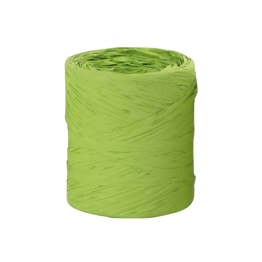 Bobina de cinta de rafia sintética de polipropileno en color pistacho, con 15 mm de ancho y 200 metros de longitud. Ideal para cierre de bolsas, decoración y múltiples usos. Disponible también en otros colores.