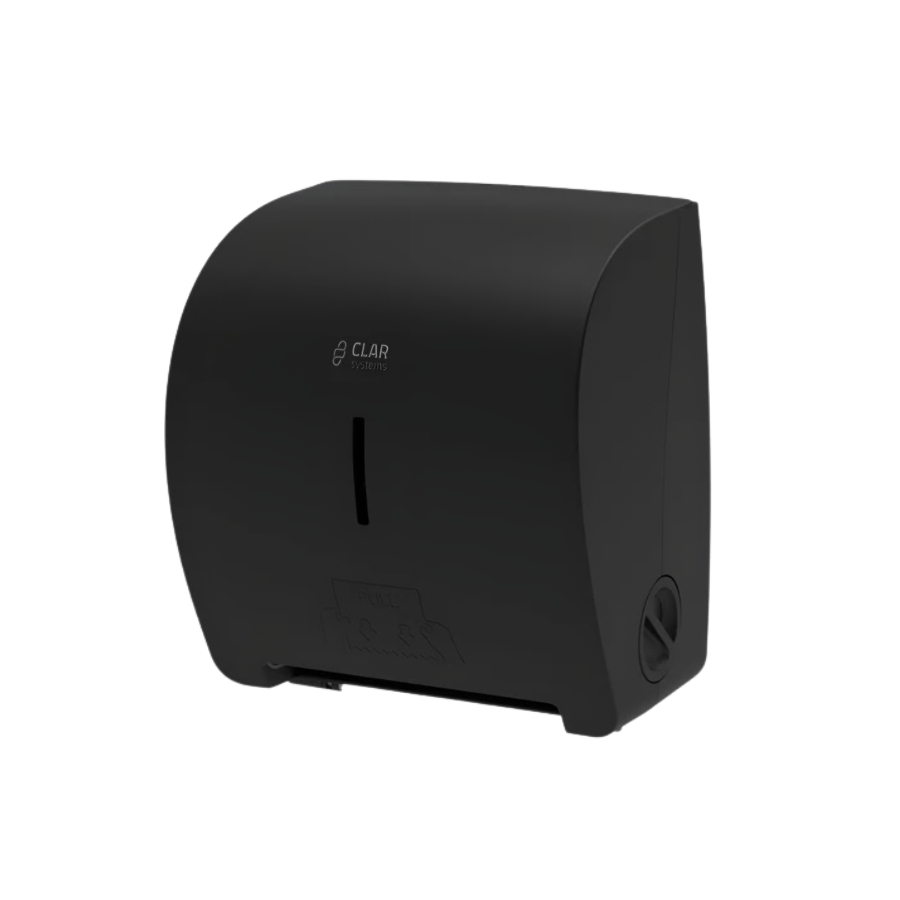 Dispensador de papel autocortante que permite una dispensación higiénica y controlada, ideal para entornos profesionales donde se requiere rapidez y eficiencia.