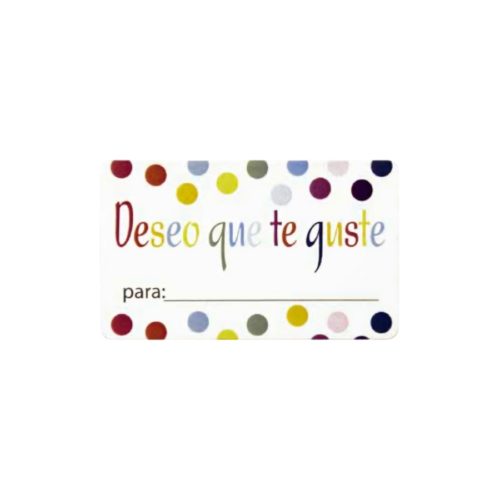 Etiqueta adhesiva con mensaje “Deseo que te guste”. Ideal para negocios y eventos. Ref. ET-2302-EC.