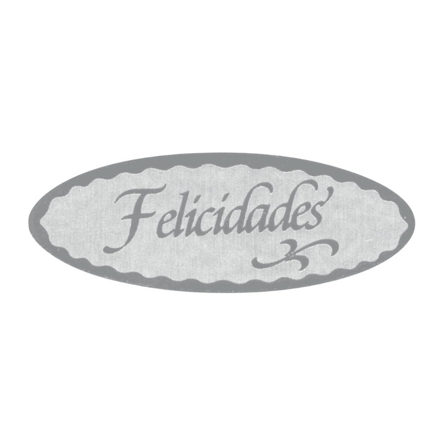 Etiqueta adhesiva con mensaje “Felicidades”. Ideal para negocios y eventos. Ref. 3-371-E.