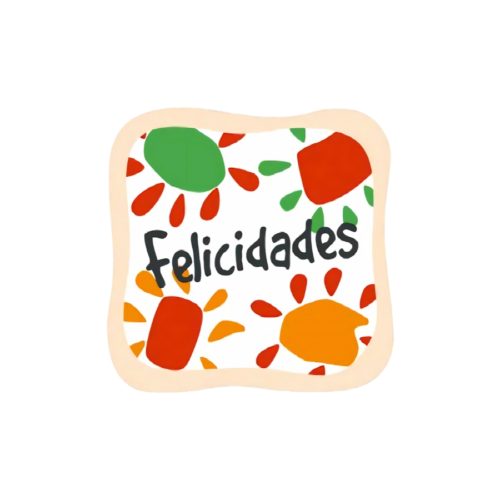 Etiqueta adhesiva con mensaje “Felicidades”. Ideal para negocios y eventos. Ref. 31-005-E.