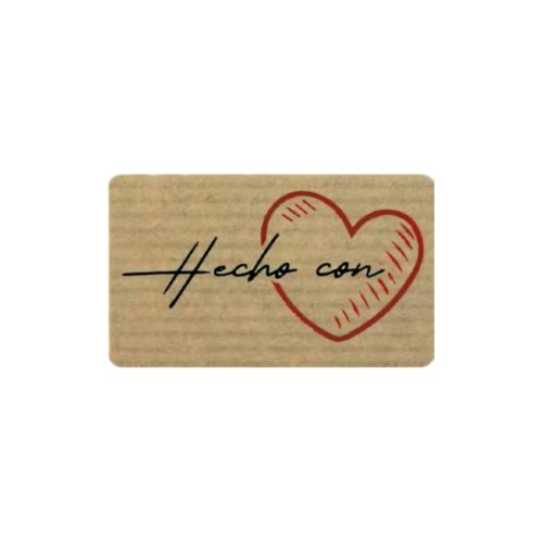 Etiqueta adhesiva con mensaje “Hecho con amor”. Ideal para negocios y eventos. Ref. ET-2303-EC.