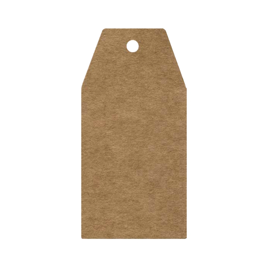 Etiqueta colgante en papel kraft natural, con forma de etiqueta, ideal para etiquetado de productos, regalos o decoración. Ref. 7007K.
