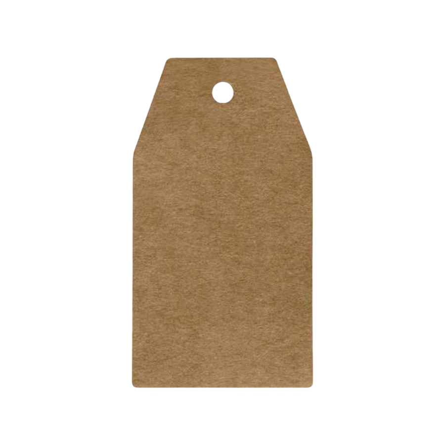 Etiqueta colgante en papel kraft natural, con forma de etiqueta, ideal para etiquetado de productos, regalos o decoración. Ref. 7008K.
