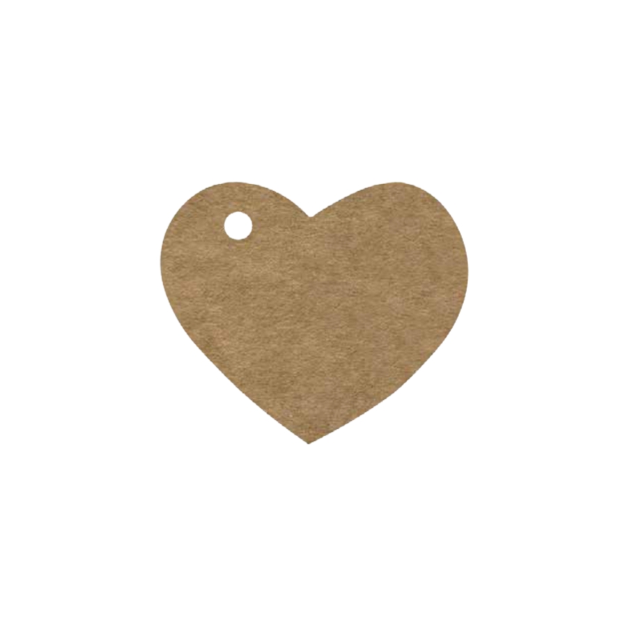Etiqueta colgante en papel kraft natural, con forma de corazón, ideal para etiquetado de productos, regalos o decoración. Ref. 7014K.