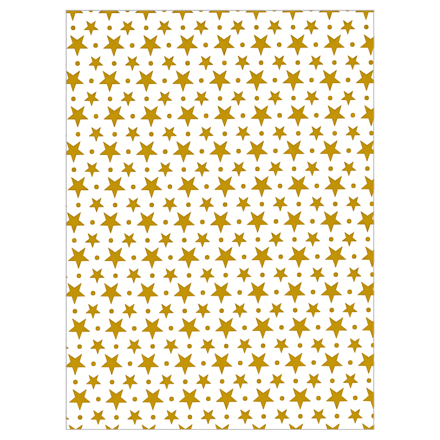 Hojas de papel de seda con diseño estrellas oro de 62×86 cm. y gramaje de 17 gr., ideales para envolver, proteger y presentar productos con un acabado decorativo y elegante. Ref. 2054.
