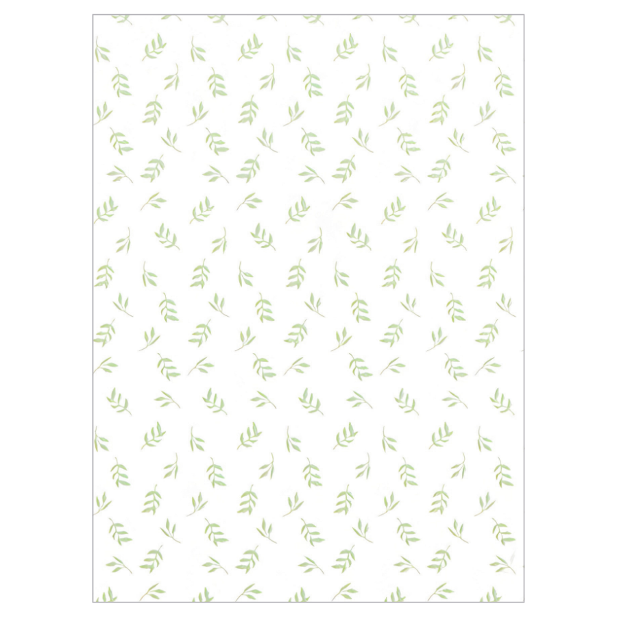 Hojas de papel de seda con diseño ramas verdes de 62×86 cm. y gramaje de 17 gr., ideales para envolver, proteger y presentar productos con un acabado natural y decorativo. Ref. 2070.