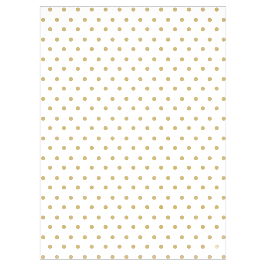 Hojas de papel de seda con diseño topos oro de 62×86 cm. y gramaje de 17 gr., ideales para envolver, proteger y presentar productos con un acabado decorativo y elegante. Ref. 2047.