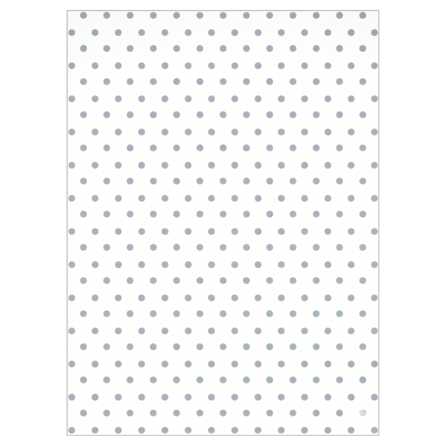 Hojas de papel de seda con diseño topos plata de 62×86 cm. y gramaje de 17 gr., ideales para envolver, proteger y presentar productos con un acabado decorativo y elegante. Ref. 2048.