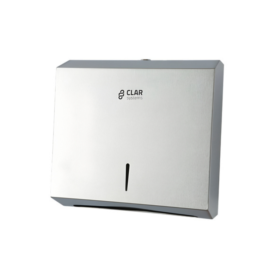 Portatoallas de papel diseñado para una dispensación cómoda y ordenada, ideal para mantener la higiene en entornos profesionales como baños y zonas de trabajo.