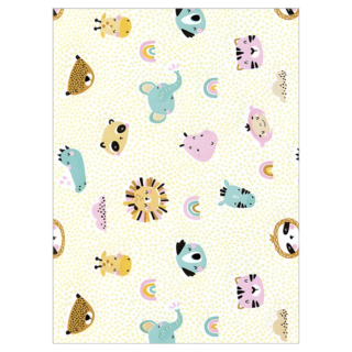 Hojas de papel de seda impresas en cuatricomía con diseño de manchas felinas de 62×86 cm. y gramaje de 17 gr., ideales para envolver, proteger y presentar productos con un acabado llamativo y decorativo. Ref. Q003.